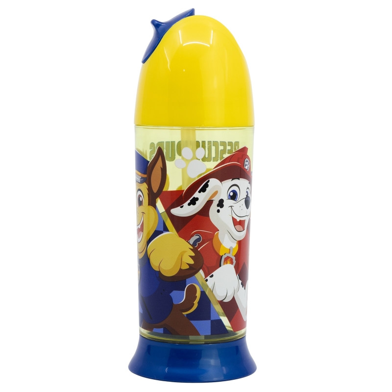 Botella de agua infantil de plástico de 280 ml tapón y pajita de silicona La Patrulla Canina