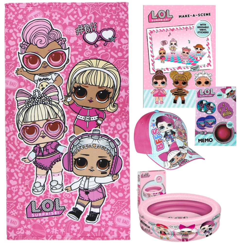 Lote LOL Surprise¡, Toalla, Piscina, Gorra, et pegatinas y Set Accesorios