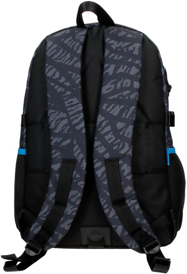 Mochila de 32 cm x 45 cm x 19 cm fabricada en Poliéster. Doble compartimento principal para guardar libros, libretas y todo el material escolar necesario. Con doble tirador de cremallera para que su apertura sea más fácil y cómoda. Dos bolsillos frontales de cremallera, uno de ellos con organizador para bolígrafos, bolsillo de rejilla y accesorios escolares, y dos bolsillos laterales para guardar la botella de agua o pequeños accesorios. Tirantes anchos, ergonómicos y acolchados que se adaptan perfectamente a la espalda garantizando la máxima comodidad en tus desplazamientos. Posibilidad de incorporarle un carro opcional gracias a su banda trasera y al sistema Magic Fix que permite una mayor sujeción de la mochila al carro. Incorpora asas de compresión lateral para ajustar el contenido. Mochila apta como equipaje de mano en aerolíneas lowcost.