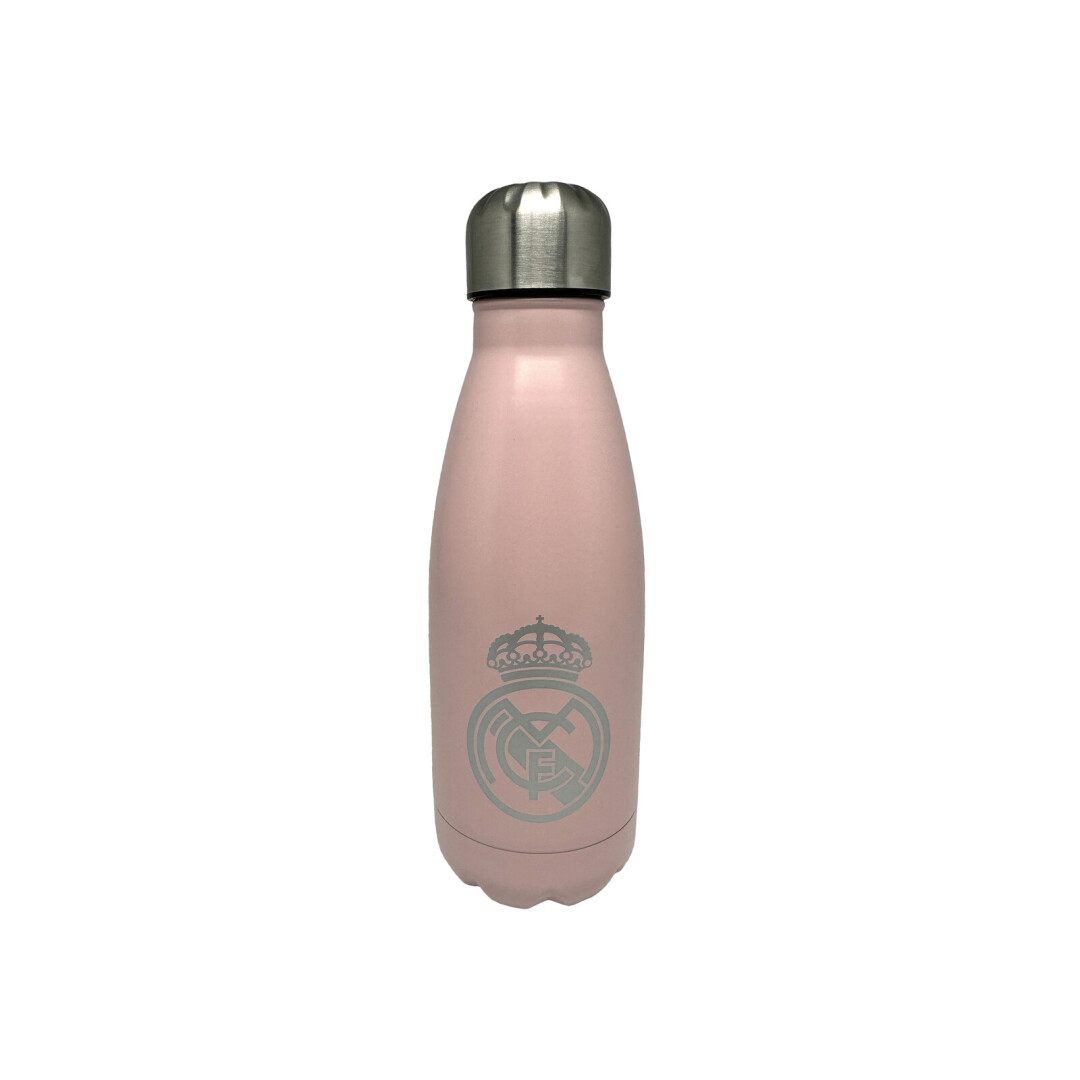 REAL MADRID: Botella de acero rosa con el escudo del Real Madrid plateado monocroma. CARACTERÍSTICAS: Con 550 ml de capacidad esta botella es ideal tanto para niños