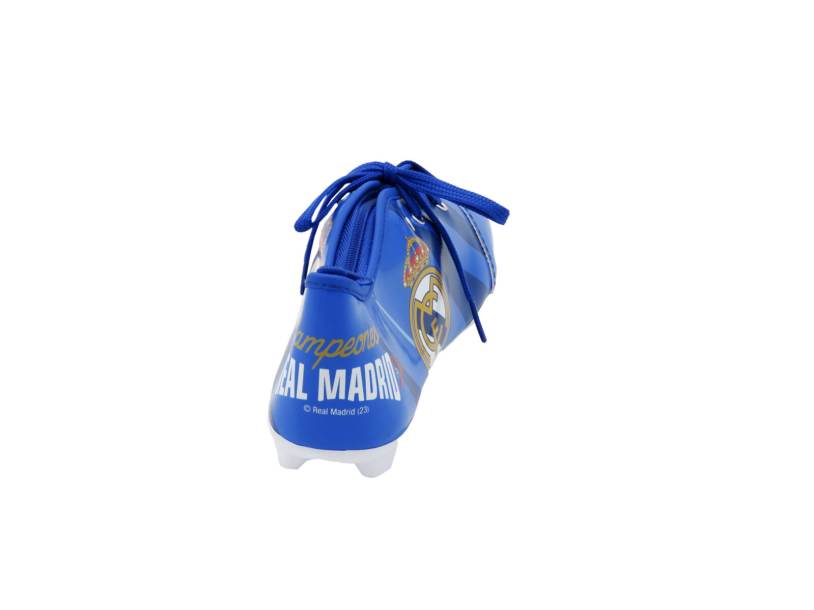 REAL MADRID: El estuche tiene forma de bota y está decorado con el escudo y los colores del Real Madrid CARACTERÍSTICAS: Este original estuche con forma de bota en 3D es perfecto para llevar el material de escritura de forma organizada. Su cierre mediante cremallera garantiza la seguridad de su contenido. PRODUCTO DE CALIDAD: Diseñado en España siguiendo todos los procesos de fabricación y calidad de acuerdo con la normativa europea. Utilizamos materiales resistentes y de gran calidad en todos nuestros productos poniendo gran esfuerzo en crear diseños especiales para ti REGALO ORIGINAL: Una gran opción como regalo para familiares y amigos. Es el regalo perfecto para navidad, un cumpleaños o una fecha especial. MARCA: Este producto licenciado es oficial y 100% original