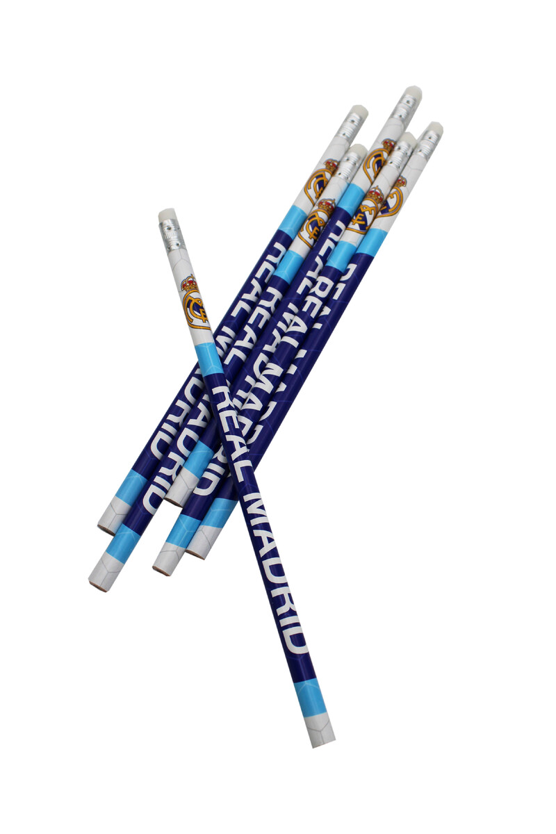 REAL MADRID: Set de papelería para uso escolar, para disfrutar de los colores de tu equipo de fútbol favorito allá donde vayas. CARACTERÍSTICAS: Contiene 6 lápices con goma de borrar diseñados con elementos icónicos del club madridista. PRODUCTO DE CALIDAD: Diseñado en España siguiendo todos los procesos de fabricación y calidad de acuerdo con la normativa europea. Utilizamos materiales resistentes y de gran calidad en todos nuestros productos poniendo gran esfuerzo en crear diseños especiales para ti. MARCA: Este producto licenciado es oficial y 100% original.